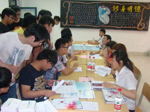 盛夏酷暑即将来临之际,各校毕业生又将辗转于各招聘会现场。而对于浙江工贸技师学院的毕业学子而言,他们则不用担心这一现象的出现,因为学院为他们精心准备了一场大型的人才交流会。2012年6月19日下午“浙江工贸技师学院2012年学生校园招聘会”在杭州校区教学楼二楼举行,有机电、经贸类几十家企业进场,本次招聘会近千岗位,让毕业生们有充足的空间与用人单位“互选”,不为就业发愁。众多学子们表示:校园人才交流会不但能够快速、准确地投递简历,还能避免外出求职车旅劳顿,不出校门便可轻松找到自己满意的工作,本次招聘企业多,提供岗位多,成交数量多,取得满意效果。