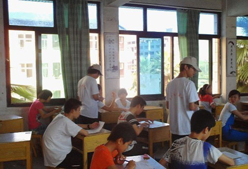 我院“骄阳”颂党送关爱实践队,乘坐大巴在长达3个小时的颠簸后,达到了目的地永嘉溪口。实践队一行人,在村民委员会主任的安排下解决了住宿问题,简单的整理后,他们开始了此次社会实践前期准备工作——寻找留守儿童。在居委会阿姨的热心带领下,去村民家中走访问候。他们的到来很快受到村民的欢迎,村民们积极为孩子报名,将孩子们交给志愿者们进行学习辅导。村民们洋溢着笑容和信任的脸庞,20多个充满期待的眼神,让志愿者们对志愿服务充满自豪感和成就感。