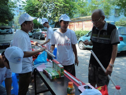 信息传媒学院的“蒲公英”推广节能灯志愿服务实践队队员们带着他们的节能灯、带着创建环保节能社区的希望,在社区展开了“节能减排,低碳环保”实践活动。你可别小瞧了他们,平时安安静静的大学生,在普及环保节能知识、以旧换新和义卖环保节能灯时确实伶牙俐齿,将使用环保节能等的好处说的头头是道。队长周庆凯感觉能为为建设节约型社会贡献出自己的一份力量格外的幸福。