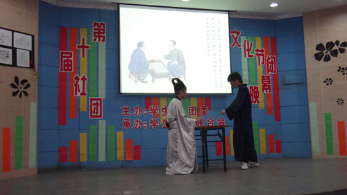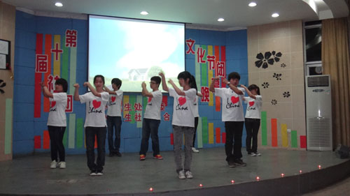 动了全场观众热烈的气氛,跳跃的舞步舞出了青春的活力、朝气、张扬与梦想,整齐的动作彰显了团队协作的魅力。接下来各个社团精彩纷呈,展现美妙绝伦的独特魅力:无论是刚柔并济的武术协会的《诚信力量》,或是刘基协会演绎的表达诚信信念的舞台剧《常阳新传》,或是爱心联盟真情表演的手语歌曲《爱》,还是清墨坊文学社提倡低碳生活方式的小品《王大爷的低碳生活》,亦或是魔术社为我们带来的魔术表演、歌友俱乐部的歌曲串烧《情歌王》都为现场观众呈现了一场雅俗共赏的视听盛宴。