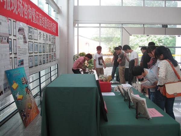 本次咨询展示活动不仅邀请了部分有着丰富创新项目指导经验的老师为前来咨询的学生做现场解答,还将2009年我院组织开展学生创业创新活动以来,涌现出的各类学生科技创新优秀作品进行了展示,其中汽机学院选送的“手工驱动式食材整理机”、注塑模模具,材料系选送的“珠形压膜循环器”以及工艺美术研究所选送的学生瓯塑作品引起了前来观展学生们的极大兴趣。