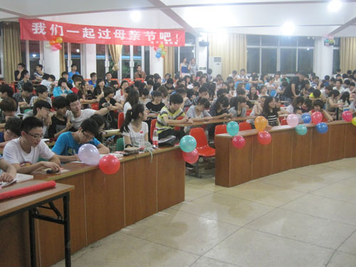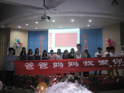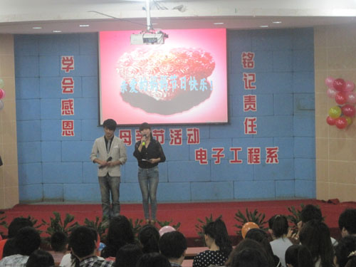 深化理解阶段,在感恩教育活动启动阶段,学校就专门召集系部主要班委开会,加强活动的指导,多方征求意见,不断提高活动的实效性。在5月13号晚上我系的阶梯教室举办了“我们一起过母亲节”的晚会。晚会上我们荣幸请到施杏姑和徐群和老师为我们的母亲代表,和我们一起过母亲节。晚会开始之时,学生代表总结了电子系从去年到如今,以弟子规为基础所进行的一系列感恩活动。在晚会上,同学们纷纷用自己的方式对感恩发表了看法,还用唱歌,手语,小品等节目的方式表达了对感恩的理解。整场晚会在和母亲代表一起做水果拼盘的游戏下推向高潮,大家一起切着水果,构思着创意,拼着果盘,忙得不亦乐乎,她们在有限的时间内为在同学呈献了一件件精致且富有内涵的作品,显现了同学们心中的对母亲的美好心愿,深化了感恩的内涵。精心雕琢的拼盘作品,样式精美,色彩诱人,体现了母亲代表和大学生的默契配合与巧妙设计。在游戏的间隙,还穿插一些节目,一曲生动有趣,节奏欢快的《听妈妈的话》让人沉浸在音乐所营造的意境之中,晚会现场气氛活跃且不失融洽,拉近了母亲和大学生的距离。晚会最后,由系周老师发表了总结讲话,带领全体学宣誓并对大学生感恩作出了希冀。