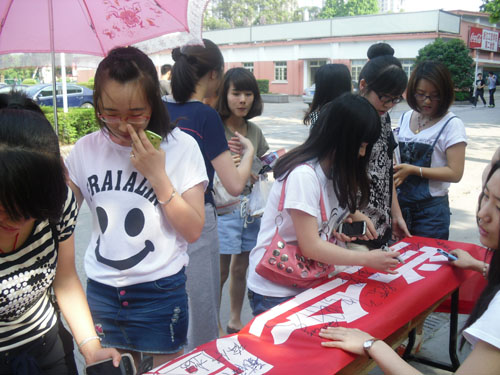 启动宣传阶段,系团总支学生会向全系同学发出倡议,让大家知道什么是感恩,为什么要感恩。5月11号下午,我系举行“学会感恩铭记责任”的千人主题签名及倡议活动。适时正下着细雨,可这挡不住电子系莘莘学子的热情,在学子广场摆着长长的印有“学会感恩铭记责任”字样的横幅,继系周老师向大家发出倡议之后,大家纷纷在横幅上郑重写下自己的签名,表达自己的决心。活动过程中,大家兴致高涨,不少同学特意利用课间休息时间赶过来签名。签名代表着承诺,意味着言出必行,大家以坚定的信念接受这无形的鞭策,严格要求自己。现场反应热烈,为感恩主题教育活动顺利开展打下了坚实的思想基础。