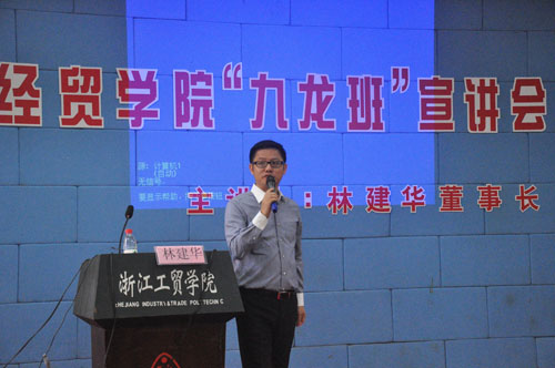 5月16日上午,浙江九龙国际物流有限公司董事长林建华一行来我院为经贸学院2010级国际贸易、商务英语、物流管理等专业400余名同学举行“九龙班”宣讲会。