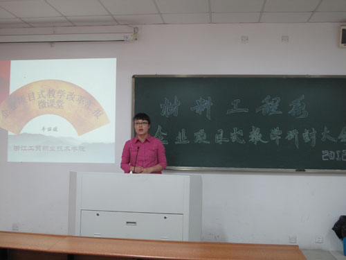 为落实学院党代会精神、结合学院教学质量月活动,材料工程系于5月18日下午举行了企业项目式教学研讨会。我系教师选取企业实际科研应用课题,结合教学内容,进行了项目式教学法说课研讨会。系主任牛丽媛博士进行了“企业项目式教学改革微课堂”模拟,台湾教师翁林教授试讲了粉末冶金工艺项目教学法,获得我系教师一致好评。
