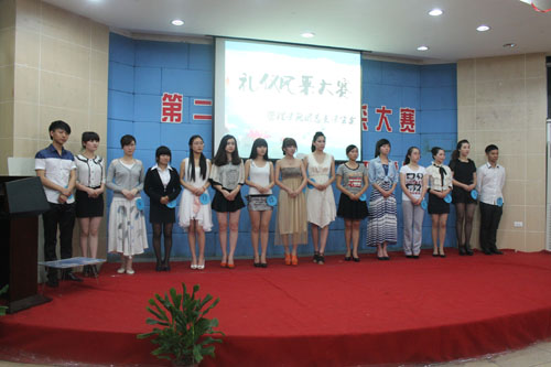 本次比赛分为初赛和决赛,经过激烈的初赛,共有15位选手进入到决赛。决赛分为四个环节,分别是礼仪走秀、明礼施仪、礼仪知识和才艺比拼。礼仪走秀表演各位选手的表现不逊色于专业模特;明礼施仪环节各位选手以组合的形式分别展示了社交礼仪、职场礼仪、酒店礼仪和古代礼仪,让在场的同学大开眼界。礼仪知识环节,选手沉着应对,台上台下激情互动;才艺比拼环节选手们个个使出浑身解数。台上竞争的激烈,台下热烈的掌声和嘉宾精彩的点评,形成了很好的比赛氛围。最后,来自会计1104班的曾海春同学技高一筹,夺得了第一名的桂冠,人力1101的李青青和酒管1101的万志斌也毫不逊色,获得了亚军和季军。