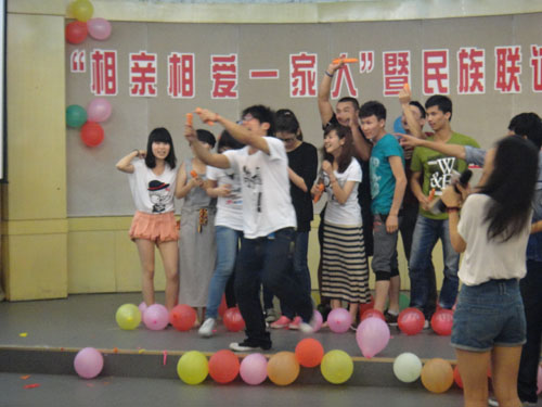 五十六个名族五十六多花,五十六个兄弟姐妹是一家,同为中华民族,要团结和睦共奋进,使得中国文化大发展大繁荣。真诚希望不同民族同学在今后的学习、生活中能加强沟通交流,互助互学。
