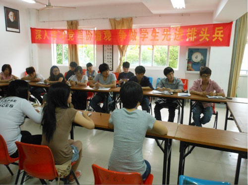 2012年5月8日,学生处、团委组织团学干部在学院党员之家学习胡锦涛总书记在纪念中国共产主义青年团成立90周年大会上的讲话。来自学院五大学生组织、各分院系团总支、学生会等团学干部代表参加本次讨论学习。