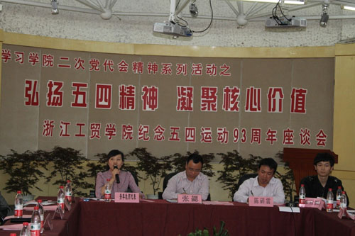 在座谈会上,来自校内外的青年代表围绕“在纪念五四运动93周年来临之际,当代青年如何在‘弘扬五四精神,凝聚核心价值’中发挥模范作用?”和“作为党员,如何在学习贯彻学院二次党代会精神中发挥带头作用?”等两个主题展开了热烈的讨论。