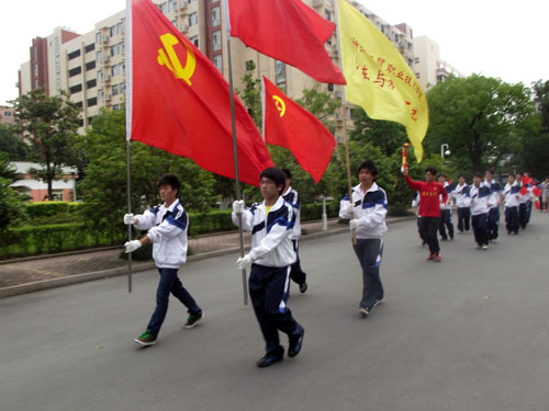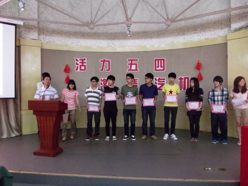 室内部分在庄严的国歌声中拉开序幕,全体同学行注目礼迎接五四的火种,当陈碎雷老师接过火炬引燃火盆之时,在热烈的掌声中开启了汽机学院红五月“五四火炬接力系列活动”的序幕。接着,陈老师为本次活动致辞,他说,五四火炬接力活动是汽机学院的传统,今年是火炬接力的第十一个年头。虽然五四运动已经离我们远去,但它的精神一直留在我们的心中。随后,谢莎同学对11年汽机学院团总支学生会的各项工作和活动进行了介绍和展示。今年,汽机学院有6位同学申请入团,他们在团旗下进行了庄严的宣誓仪式,光荣地加入中国共青团,在场的老师和同学也重温誓词,感受青年事业的激情。仪式过后,是隆重的颁奖典礼,本次活动颁出了2011年度汽机学院优秀团干部和优秀团员的奖项,团干代表虞忆锋和团员代表杨明明同学发表感言,希望能够继续努力,在工作、学习和生活中起到带头作用。本次活动,除了有庄严的宣誓、隆重的颁奖,更有丰富多彩的节目,激情高亢的歌曲《红旗飘飘》、荡气回肠的朗诵《青春中国》以及活泼生动的互动问答。最后,全体师生合唱一曲《光荣啊,中国共青团》,将气氛推向了高潮。本次五四火炬活动顺利圆满落幕,而五四精神将长久激荡在学生的心中。