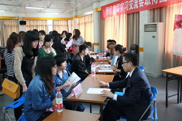 为进一步做好今年人力资源管理专业“工学结合”工作,落实学生顶岗实践岗位。4月24日下午,管理学院在学院多功能厅举办了“管理学院人力资源专业学生工学结合招聘会”,共有十多家企业报名参加了此次招聘会。