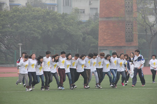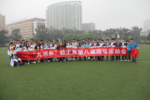 本次趣味运动会主要由20*30米接力,拔河比赛,时代列车,跳绳,十五人连足五个项目组成。虽然天公不作美,但是同学们的激情却只增不减,经过一整天激烈地角逐,眼镜1001获得团体总分第一,眼镜1102获得团体总分第二,视光1002获得团体总分第三。自此,“九洲杯”轻工系第八届趣味运动会取得圆满成功。
