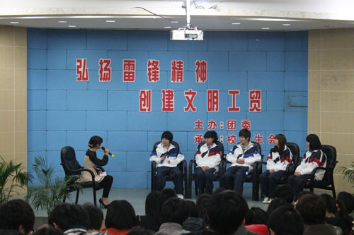 为让雷锋精神走进每个工贸学子的心间,让更多的工贸学子参与到学雷锋活动中,3月21日晚,学院举行了“雷锋班级”事迹专题访谈会,轻工系主任卢行芳老师、团委负责人陈碎雷老师、轻工系艺术设计1101班(“雷锋班级”)班主任秦宣振老师、“雷锋班级”学生代表、以及来自各院系的学生代表一同分享了雷锋班级的故事和深入探讨了雷锋精神价值。