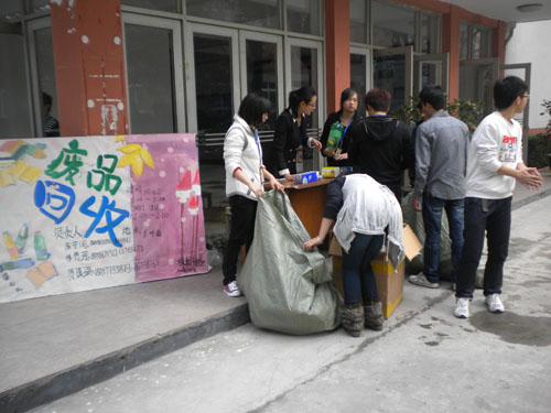 春风贺喜无言语,花枝招展满校园。近日,由我院宿管会主办的“废品回收”活动在科技楼前正式拉开了序幕。本次活动以“创建绿色低碳校园”为主题,以废旧塑料瓶为主要回收对象,并用“废品”换“礼品”的形式兑换,采取自愿回收的模式进行,活动时间持续三天。