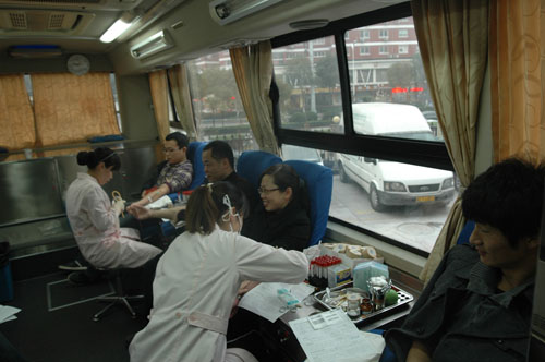 2012年3月23日,学院工会组织学院教职工到温州市中心血站参加无偿献血活动。这天早上八点半,天灰朦朦、阴沉沉的。二十多位老师却满怀着热情,洋溢着笑容,在学院工会的组织下搭乘校车前往市中心血站。老师们都是自愿报名,所以兴致很高。一到血站,有的老师已提早赶到,第一步的体检程序都做好了。随着程树存、赵秀芝等老师的陆续加盟,献血队伍更是壮大了,大家井然有序地排着队。不少老师都带来了献血证,他们都不是第一次参加献血活动,“献血献爱心,血浓情更浓”。经贸学院的白福川老师是第五次来献血了;技师学院程树存老师更积极,献血已达七次之多了;汽机学院的豆照峰老师才二十多岁,已是第八次献血了;年轻的女教师赵岚也很踊跃,一次又一次地参加献血。学院老师们献出的不仅仅是几百CC鲜血,更是一份真情,一颗爱心,谱写新时代雷锋精神。