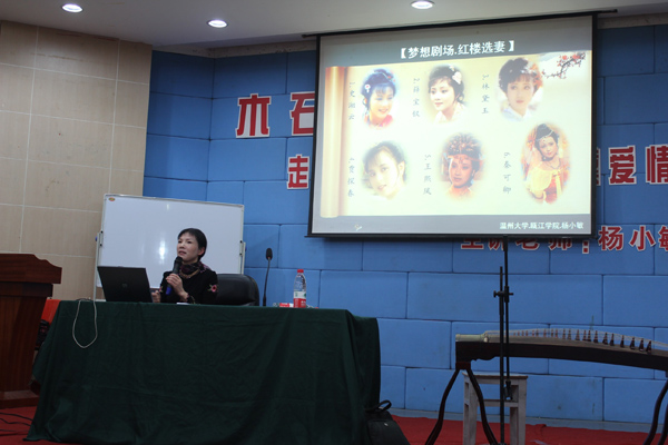 11月16日晚,由管理学院举办 “木石情缘,走进《红楼梦》中的宝黛爱情”为主题的讲座在阶梯教室开讲。主讲人是来自温州大学瓯江学院人文系的杨小敏副教授。张勰书记、陈君等老师以及管理学院的学生参加了本次讲座。