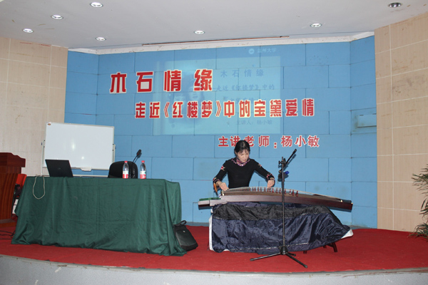 纳兰容诺的一句“人生若只如初见”,道出了黛玉之泪的幽美。老师为同学们展示《红楼梦》中的经典片段,与同学们互动提问,气氛活跃,并分析了《红楼梦》中的人物特征与社会背景。现场的学生们听得津津有味,对我国的经典文学有进一步的了解。最后,杨老师亲自为大家弹奏了《葬花吟》,琴声悠扬、余音袅袅,给本次讲座画上了完美的句号。