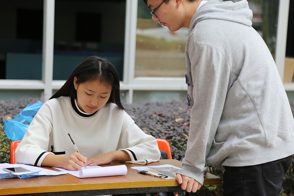 12点30分,书画展正式开始。现场展出的一幅幅书画作品吸引了众多同学的目光,现场创作书法作品让许多人跃跃欲试。本次展出的作品大多是何铁山老师和创作部的优秀作品。这些作品风格迥异,有方正规矩的正楷,有飘逸清秀的行书,还有妩媚的隶书。现场创作书画作品让每个人亲身参与其中,他们切实地体会到传统文化的博大精深和书画创作的独特魅力。下午三点时分,老师们驻足观看,留下珍贵墨宝,并对展出作品以及现场创作作品表示赞赏。