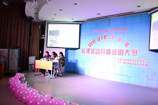 2015年12月20日晚,经贸学院”爱心”素养教育之心理情景剧大赛在学院阶梯教室拉开帷幕。参加本次活动的有经贸学院党总支书记项光春老师,经贸学院团总支书记高莎老师,经贸学院辅导员向政老师、郑雪琦老师、张婷老师,经贸学院团总支学生会主席钟超锋,团总支学生会副主席黄烨雯,团总支副书记陈琼,以及参赛班级队伍和观众。