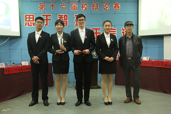 为了锻炼和提高我院学生的思维能力和应变能力,共同营造良好的校园学习氛围,2015年11月27日晚在我院阶梯教室举办了学院第十六届辩论赛总决赛。人文系副书记徐辉老师、人文系周晓玲老师、朱余洁老师、高职研究所叶锋老师以及学生处郑和淋老师当任现场评委。