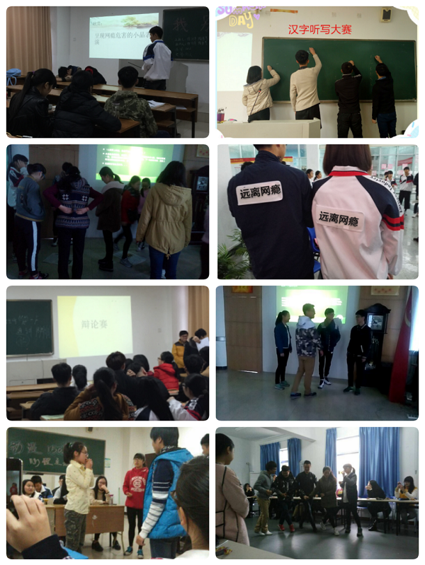心理主题班会是心理健康教育的一种重要形式,在搭建心理沟通平台、畅通心理咨询渠道、探讨解决现实中存在的各种心理问题等方面取得了较好的成果,对于实现自我认知、自我成长具有重要意义。每年心理咨询室都会定期举办班级心理主题班会比赛,本次心理主题班会的主题是“我别网络瘾”。通过本次心理主题班会,引导学生科学合理使用网络,让同学们做网络的主人,而不是做网络的奴隶,追求健康上网,让每颗心灵为戒网瘾呐喊!