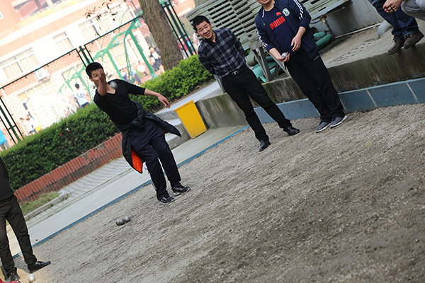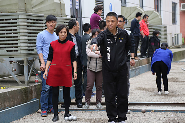 3月29日下午3:30,比赛在“E立方”外北侧小金属球场如期举行。共有12个分工会(小组)组队参赛,不少老师是初次接触地掷球,都觉得新奇有趣。比赛在轻松愉悦而又不失热烈的气氛中进行。场内选手全神贯注,用心掷出每一个球;场外啦啦队凝神观战,时而喝彩欢呼,时而惋惜感叹。大家在享受地掷球比赛乐趣的同时,也在不断总结经验,提高技艺。