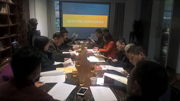 温州市刘基文化研究会第二届三次理事会3月30日在浙江工贸职业技术学院思珀办公楼成功举行。会议由研究会常务副会长曹明主持,研究会会长盖庆武、常务副会长、秘书长俞美玉以及其他理事、会员参加会议。