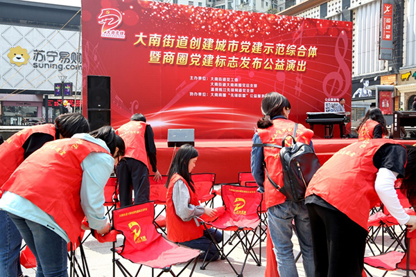为响应和落实市委宣传部有关“新青年下乡”大学生服务基层的总体任务目标,3月27日,人文系“新青年下乡”志愿服务队一行20余人来到银泰广场,与大南街道合作开展“大南街道创建城市党建示范综合体暨商圈党建标志发布公益演出”活动。