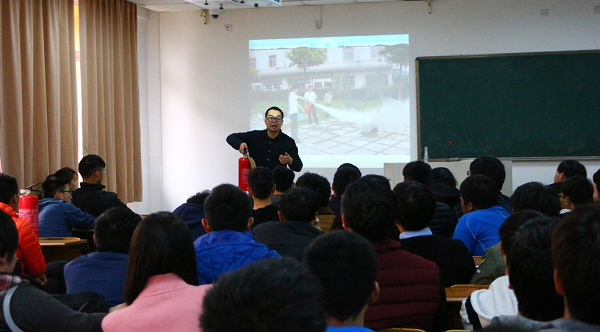 为了提高学生们的安全消防知识,加强学生们对消防器材使用流程的认识,2016年3月17日,汽车与机械工程学院邀请曾在温州消防支队挂过职的张余教师为15级学生开展消防知识讲座。