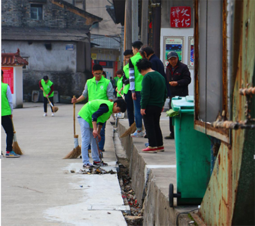 活动过程中我们志愿者们与村民热情交流,并积极帮村民们打扫文化礼堂及周边的公共环境卫生,在互动的过程中,同学们也了解到上埠头是一个保留诸多温州地方传统文化的“古董村”,以文化礼堂这个传统祠堂建筑为代表,还留有许多有地方建筑特色的古老的民居,此外,还有诸多结合节气以及传统节日的风俗活动,比如最近的农历三月初二他们就会有一个大的集会。在老人们的讲述里,同学们也了解到温州本地丰富多彩的地方文化。