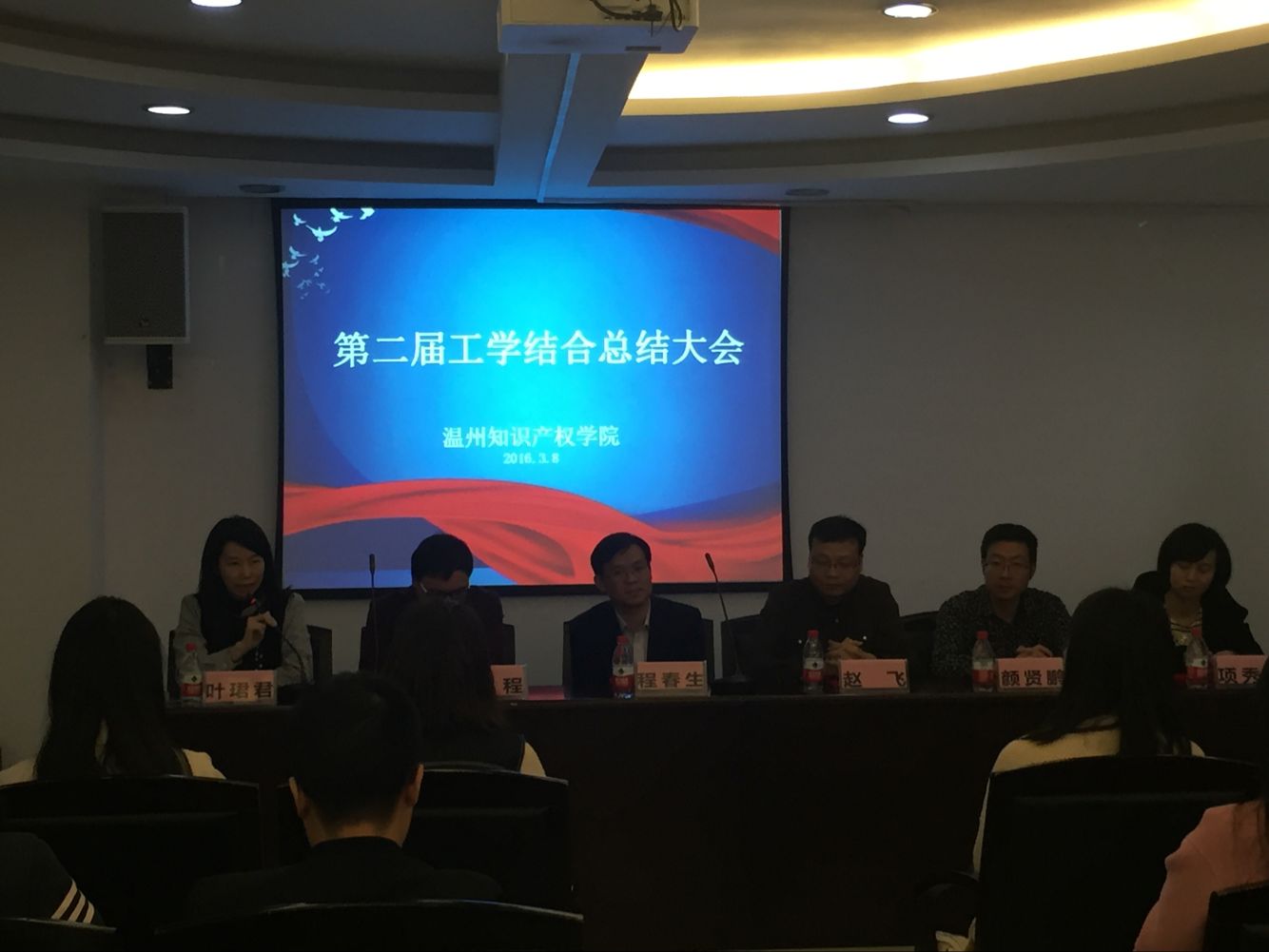 为加强学生实践能力,提升学生专业技能,提高学生职业道德意识,知识产权学院于3月8日在技能大楼3楼会议室举行“第二届工学结合总结和表彰大会”。本次工学结合活动历时两个月,从2015年11月16日到2016年1月18日期间,知识产权学院共有101人参加,覆盖31家企业,成效较好。为表彰与感谢参与人员的付出,大会共邀请了5位企业优秀指导老师代表参加,他们分别是来星际控股集团有限公司、盛博电子、温州金点知识产有限公司、北京卓信知识产权、温州品创专利商标事务所等企业和专利代理公司的负责人。