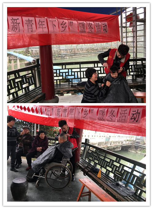 据介绍,十八家文化礼堂根据社区需求,需要义工队提供义务理发项目,但是考虑到我校未开设理发相关专业,为解决社区居民实际需求,经贸学院特别邀请吕剑校友前往礼堂进行义务理发活动。活动未开始前,社区已经聚集很多前来理发的居民,有坐在轮椅上的老人,有腿脚不便、不能独自前往理发店的老人,还有为省钱几个月没理发的老人,更有被爷爷奶奶特意带来理发的儿童。很快,居民们就亲切的喊吕剑校友为“帅哥理发师”。“帅哥理发师”根据居民要求为居民理好各类或新潮、或实用的发型。