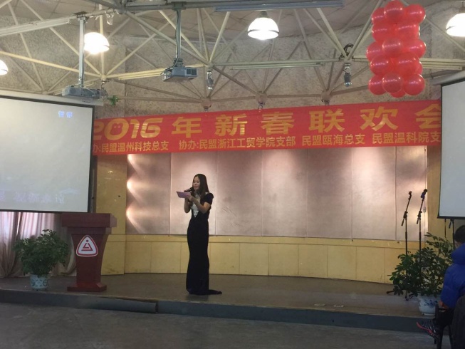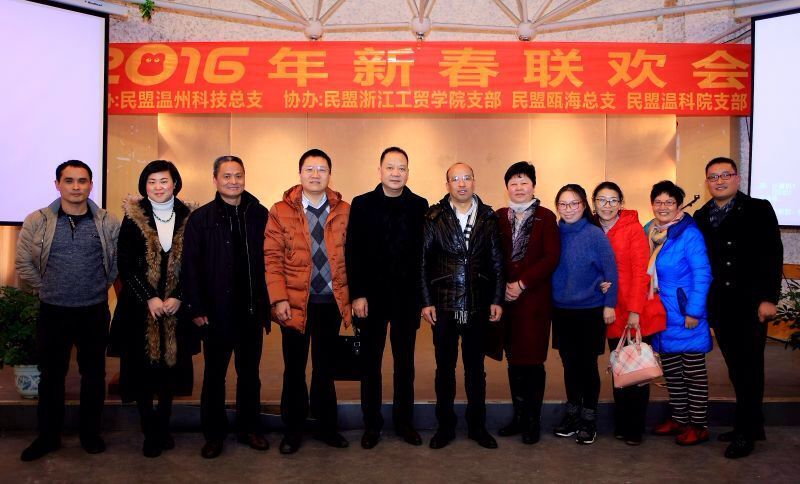 2016年1月23日下午,由民盟温州科技总支主办,民盟浙江工贸职业技术学院支部、联合民盟瓯海总支、和民盟温科院支部协办的2016年迎春联欢会,在浙江工贸职业技术学院多功能厅举行。