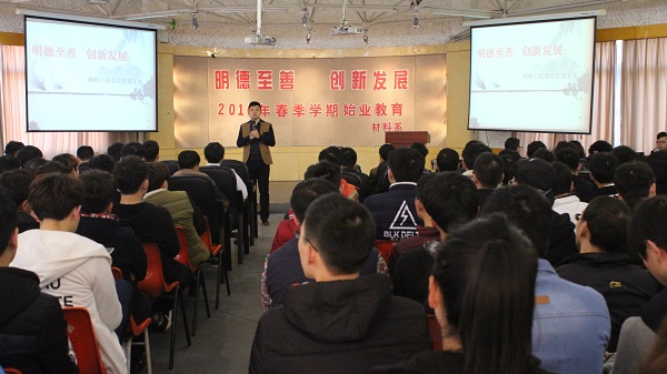 2月27日,材料系在多功能厅举行了以“明德至善 创新发展”为主题的2016年春季学期始业教育。材料系副主任史子木(主持工作)、党支部副书记万登泸(主持工作)、各班班主任、辅导员以及2014级、2015级全体同学参加了本次活动。