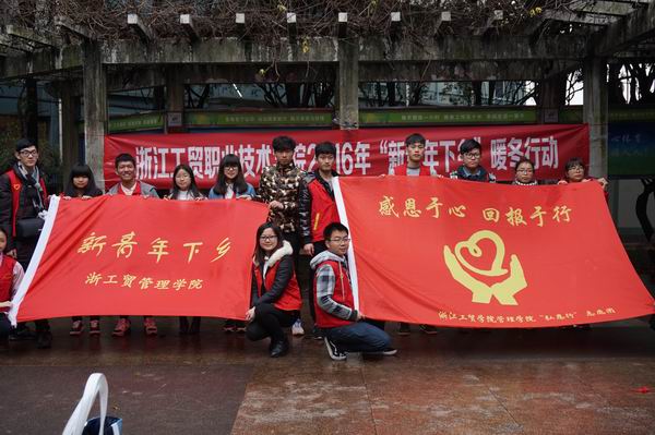 2016年1月17日上午,管理学院协同学院团委在广化街道集善社区篮球场举行新青年下乡暖冬行动,广化街道是管理学院新青年下乡对接单位。参加服务的队伍有学院团委组织的瓯绣、瓯塑、地掷球团队、摄影协会、舞蹈协会以及管理学院派出的金融服务志愿队的同学们;给居民提供的服务有瓯绣、瓯塑作品展示与体验,新版人民币辨别、赠送挂历台历春联、集体舞教学、全家福摄影等服务项目。