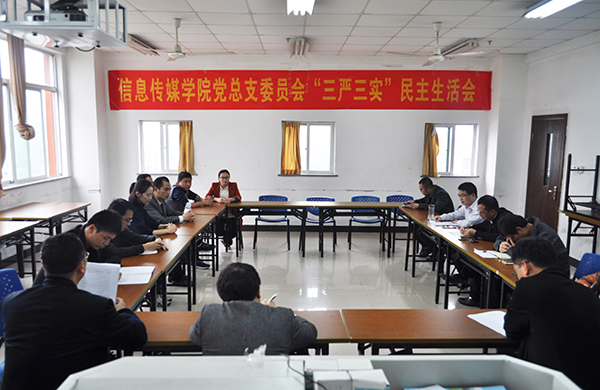 信息传媒学院党总支书记任志杰代表党总支班子作“三严三实”对照检查材料,并结合学院的“十三五”规划及新形势下解放思想大讨论、两学一做、创新创业等方面的工作,提出了围绕“三严三实”的改进方法,为下一步发展统一了思想。