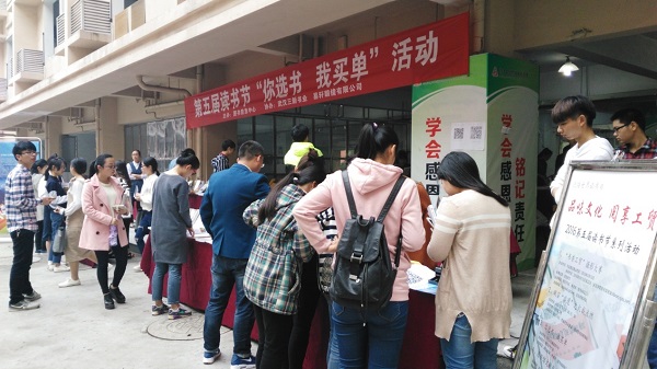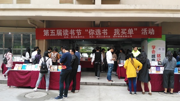 4月21日,图书馆联合武汉三新书业、院学生党建服务中心、易轩眼镜有限公司等单位在在学子广场举行学院第五届读书节 “你选书,我买单”活动。