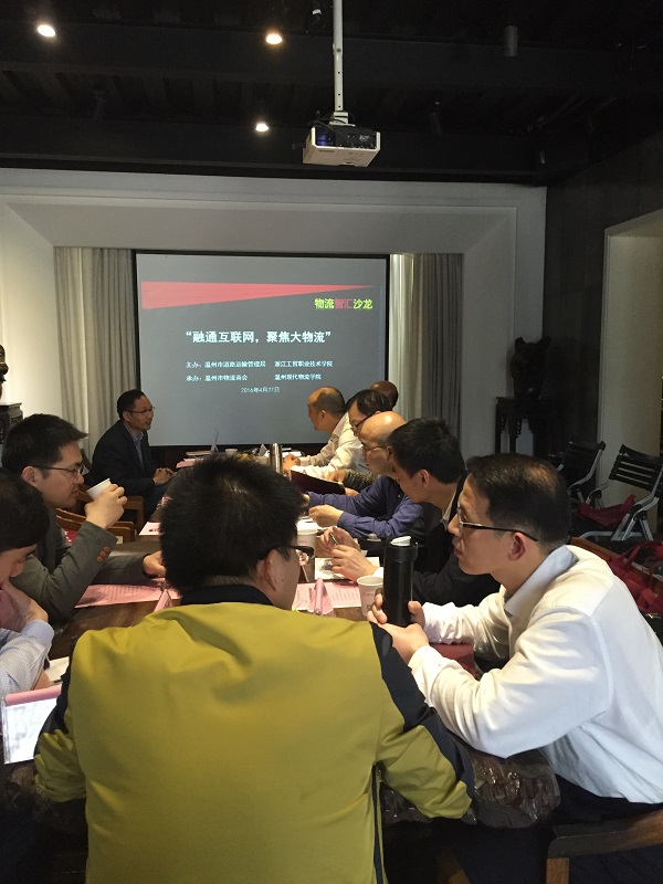 4月27日下午,温州现代物流学院在浙江创意园思珀会议室成功举办2016年第一期物流“智汇”沙龙,本次沙龙的主题是“融通互联网、聚焦大物流”,来自浙江省交通科学研究院、温州市发改委、温州市运输管理局、温州市物流商会、温州机场、金温铁道、公路货运的十余位领导和嘉宾以及我院物流师生参与了此次活动。