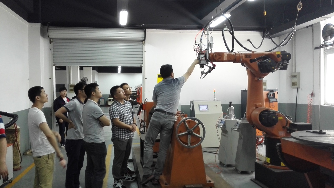 一行人到达示范中心后,吴经理详细介绍了激光应用示范中心目前的研究方向,包括激光热处理技术、激光熔覆技术和激光合金化技术等,以及这些技术在泵阀、模具、石油化工和矿用机械等领域的应用情况。之后,吴经理带领参观了示范中心的半导体激光表面强化及再制造设备、4000W光纤耦合半导体激光及各类激光加工设备。参观完后,与吴经理就企业推广研发合作、光机电应用技术专业专家委员会、学生实习就业等方面进行了交流会谈。