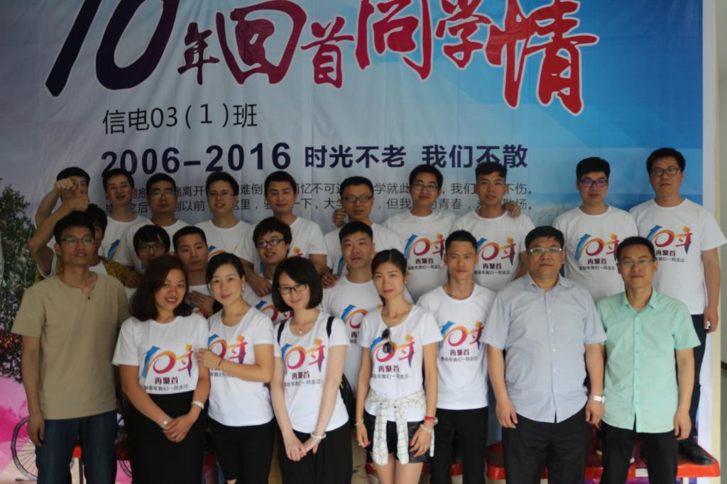 时光飞逝,岁月如梭,转眼已毕业十年,他们已成家立业。为了找寻封存在心灵深处美好的记忆,为了再次感受美好的校园生活,重拾纯真的友谊,2016年5月14日上午,电子系电信03(1)班同学在毕业十周年后,再次相聚在母校,回首不散场的青春。