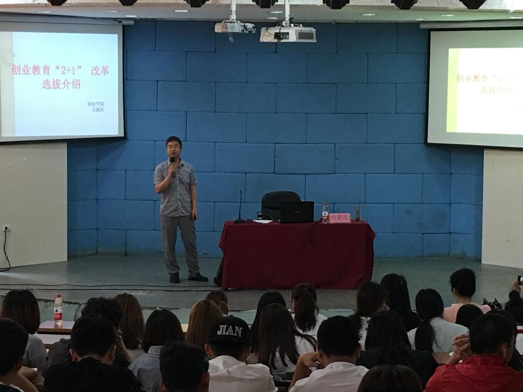 5月18日,经贸学院联合创业学院开展的“2+1”创业教育政策宣讲会在阶梯教室举行。宣讲会由创业学院院长台新民主讲,经贸学院院长汪焰主持。