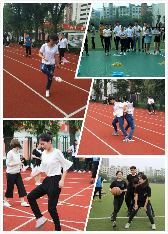 本届趣味运动会共有六大项目:十人十一足、瞄准投篮、连环踢毽、拔河、趣味接力、海底传月。随着开幕式结束的一声哨响,各项比赛正式开始,绿茵操场化作竞技场,如火如荼的竞赛氛围瞬间引爆全场。这边跑道上,十人十一足吸引了大批的啦啦队和观众,在加油声中,绑在一起的脚,连在一起的心,飞似的奔向终点。那边,趣味接力则是紧张与欢笑交融,看着转圈转晕了的选手,还在一蹦一跳的袋鼠跳,萌性大发。同学们既为比赛的输赢绷紧了弦,又被趣味的项目逗笑了脸。场外还有同学们积极投稿、点歌,为自己的班集体加油,用鼓励的话语和动人的音乐,表达对班集体的热爱和祝福。