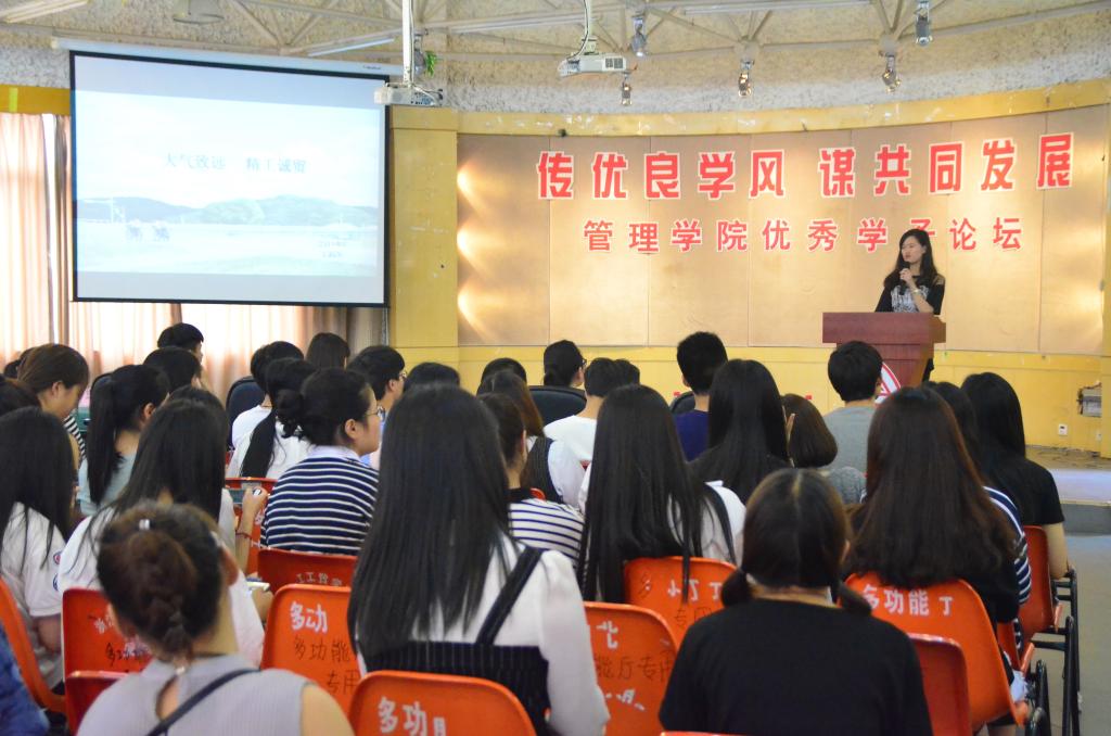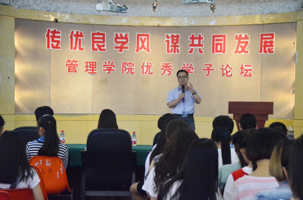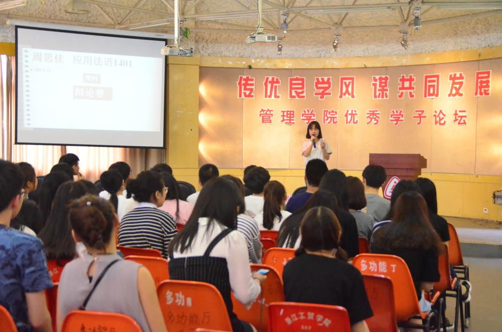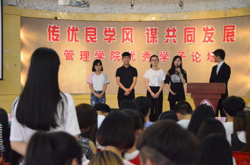 2016年5月23日,管理学院在多功能厅举办了以“传优良学风,谋共同发展”为主题的优秀学子论坛。本次活动邀请了管理学院党总支张勰老师、团总支贾飞祥老师出席,管理学院会计1406班金琪琪、会计1403班王莉萍、人文系应用法语1401班周思佳、汽机学院机电1403班沈杰出席为优秀学子代表。