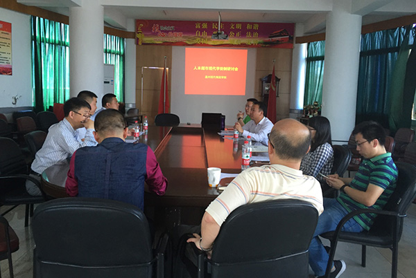 5月13日下午,物流管理专业现代学徒制人才培养模式研讨会在浙江工贸学院一号楼六楼会议室召开。温州人本物流服务有限公司总经理陈亮、十足集团股份有限公司人力引进处经理郭虎东、物流学院副院长陈碎雷、物流学院专业主任陈再波以及物流学院的全体教师参加了研讨会。