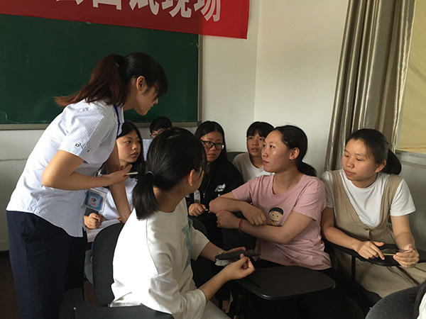 会上,王经理就同学们非常关心的岗位职责、薪酬制度以及在人本物流实习期间的吃、住、行情况等做了详细阐述,同学们也对自己感兴趣的细节问题向王经理提问,王经理给予一一解答,李科长与同学们就细节问题进行面对面的交流。随后,郭经理给在场的同学发放《校园招聘登记表》,同学们填写完等级表,即进入面试环节。