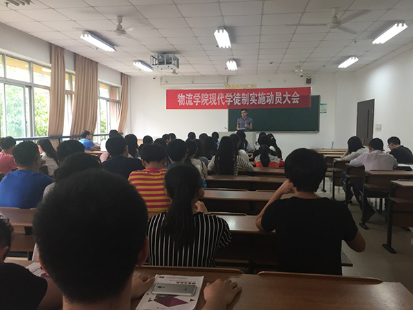 5月23日,物流学院现代学徒制实施动员大会在6207教室召开。大会由物流专业主任陈再波老师主持,全体物流教师及物流15级仓储方向学生参加。
