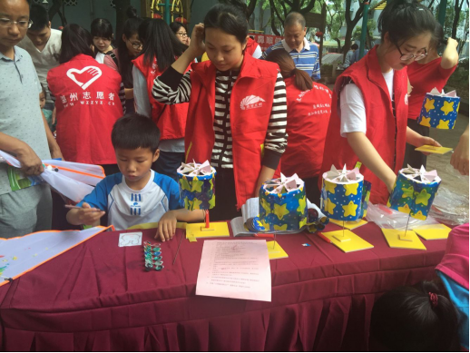 志愿者帮助小朋友制作走马灯