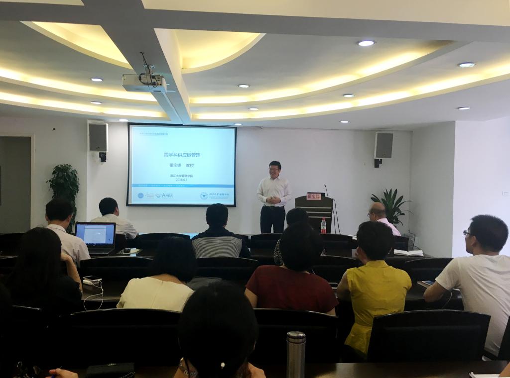 6月7日下午,应经贸学院邀请,浙江大学管理学院霍宝锋教授来我院作了一场题为“跨学科供应链管理”的科研专题讲座。讲座在3号楼风险投资研究院会议室举行,经贸学院院长汪焰主持本次讲座,经贸学院全体教师和其他院系部分老师共同参加了本次讲座并进行深入的学术交流。