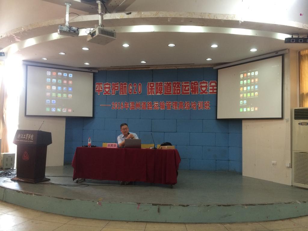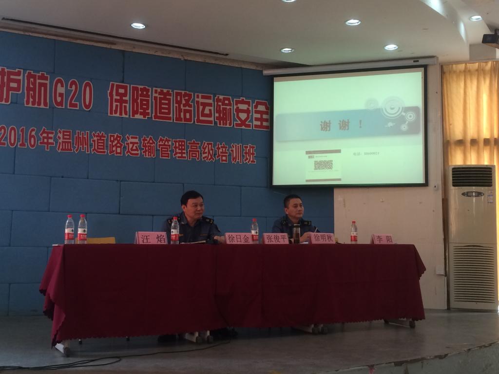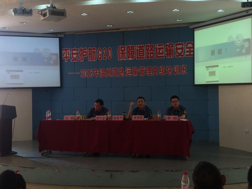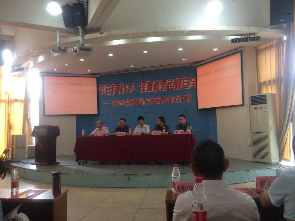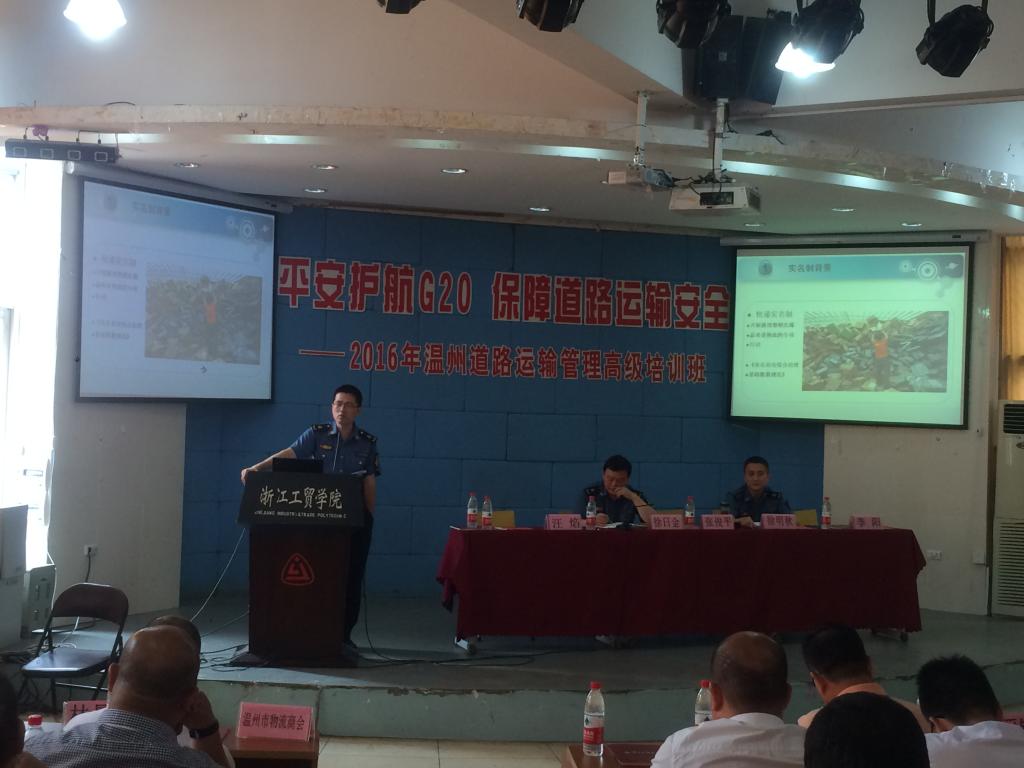 G20峰会将于2016年9月4-5日在杭州举行。为了更好地强化G20峰会期间道路运输安保工作,促进道路运输行业平稳、有序发展,为我市道路物流业发展提供人才支撑,平安护航G20,推进货运实名制改革,促进道路货运环境安全, 6月30日,由温州市道路运输管理局和浙江工贸职业技术学院主办、温州现代物流学院和温州物流商会承办的“2016年温州道路运输管理高级培训班”在浙江工贸职业技术学院1号楼阶梯教室举行。市区400多家道路货物运输企业负责人参加了会议。培训班由温州市运管局货运处处长徐明秋和温州现代物流学院副院长陈碎雷主持。