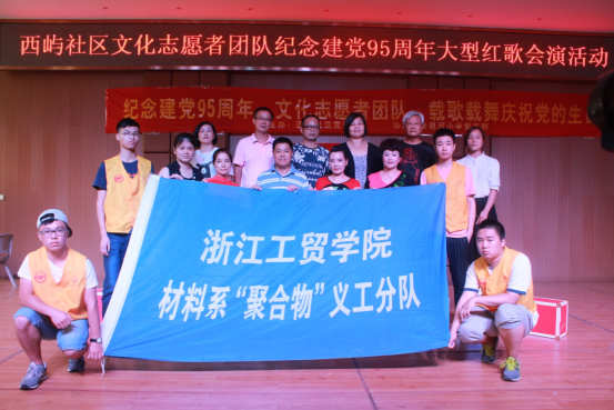 为了庆祝党的95周年生日,提倡“”两学一做”系列讲话内容,在2016年6月30日,西屿社区党委联合浙江工贸学院材料系“聚合物”义队于城南小学(会昌河校区)举办了庆祝建党95周年大型红歌会演活动。